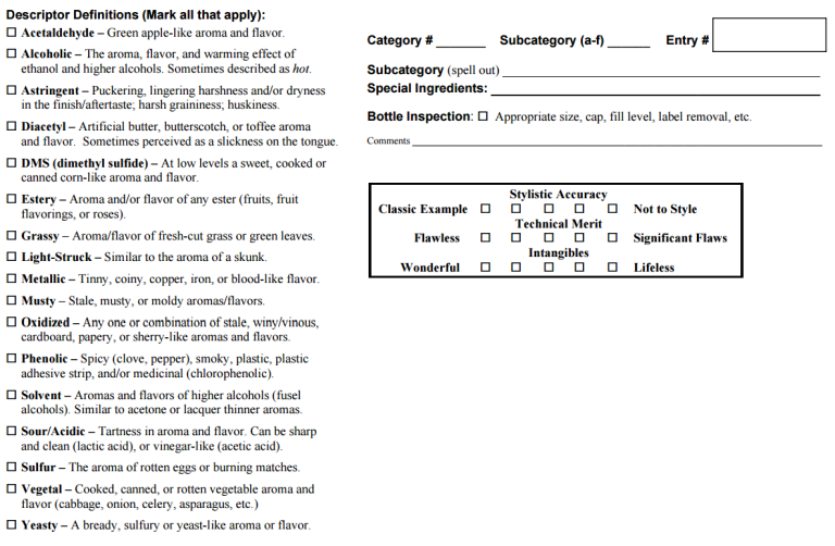 Descriptive Ability –Betimleme kabiliyetiniz. Aldığınız koku tat ve diğer hisleri net ve açık şekilde ifade edebildiniz mi? Örnek bir cümle şu şekilde olabilir: Orta acılık ve amerikan şerbetçiotundan gelen orta-düşük turunç aroması.